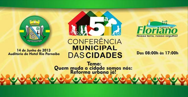 Discutir a cidade. Com essa proposta, Floriano, organiza a 5ª Conferência Municipal das Cidades. O evento será realizado na próxima sexta-feira (14/06), no auditório do Hotel Rio Parnaíba, das 8h às 17h. Participarão do evento os delegados eleitos nas pré-conferências e observadores que também já se inscreveram para participar do evento. As secretarias de Governo e de Desenvolvimento Econômico estão à frente do evento.